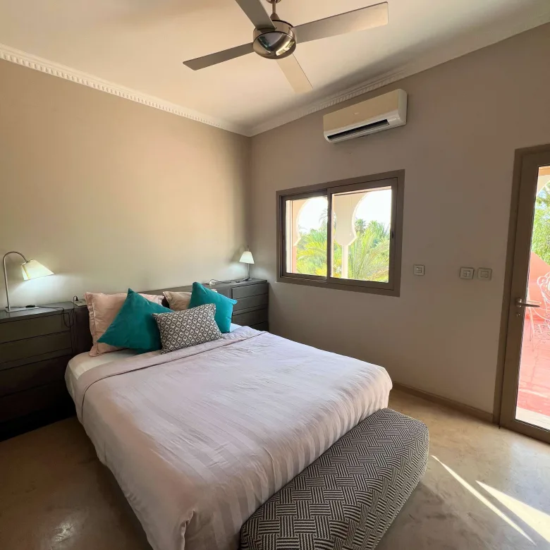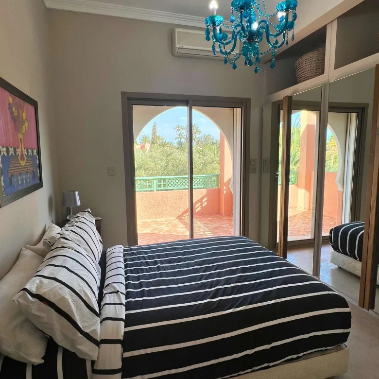 Located in the heart of the Palmeraie, this 2-bedroom apartment perfectly blends elegance and comfort for an unforgettable stay.